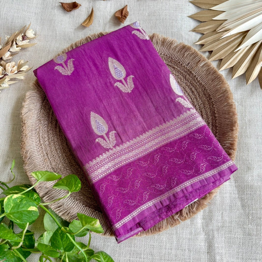 Pink Lotus Floral Chanderi Silk Cotton Saree